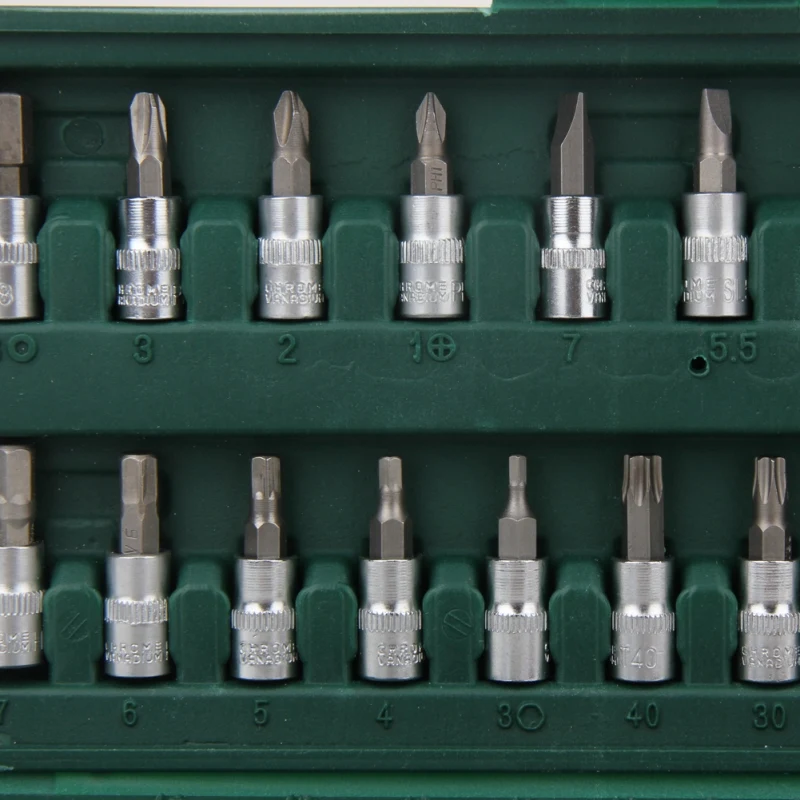 The socket using high-quality chrome vanadium steel 50 bv30 cold-press forming, torque 50% higher than that of carbon steel, use inferior smooth surface processing, good rust prevention effect. Batch head adopts cr-v materials, stronger hardness, toughness is higher.