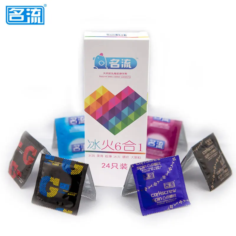 Special Price Condoms 24 Pcs 6 Types Ultra Thin Ice and Fire Dotted Natural Latex Double Lubricated Condoms Sex Toy for Men Safe Contraception